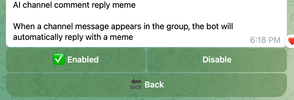 After enabling this feature, when a channel text message is detected in the group, AI will match it and send a related meme.