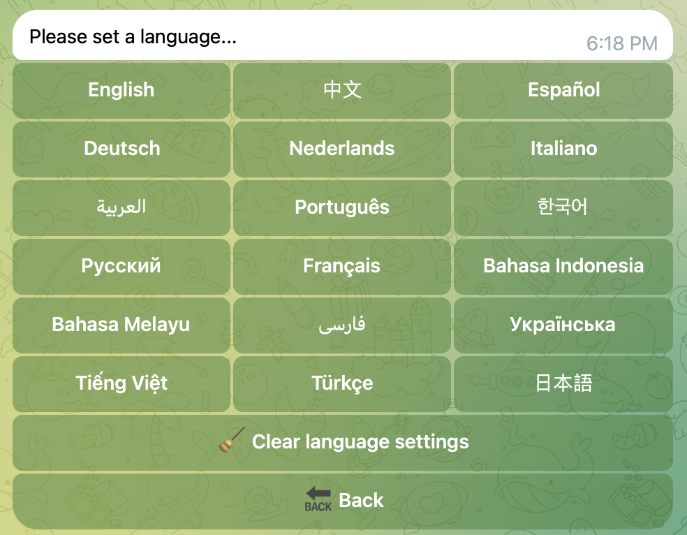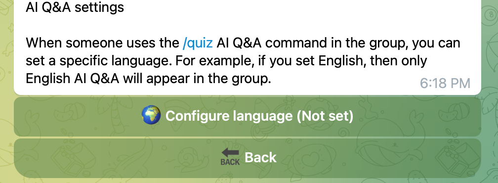 When someone uses the /quiz AI Q&A command in the group, you can set a specific language. For example, if you set English, then only English AI Q&A will appear in the group.