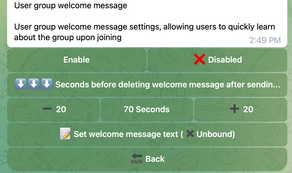 After a user joins the group, the bot will send a welcome message in the group.