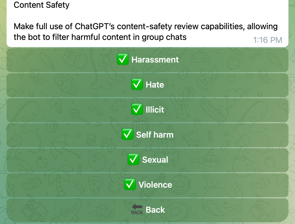 充分利用ChatGPT内容安全审核能力, 机器人可以在群组中过滤一些有害内容