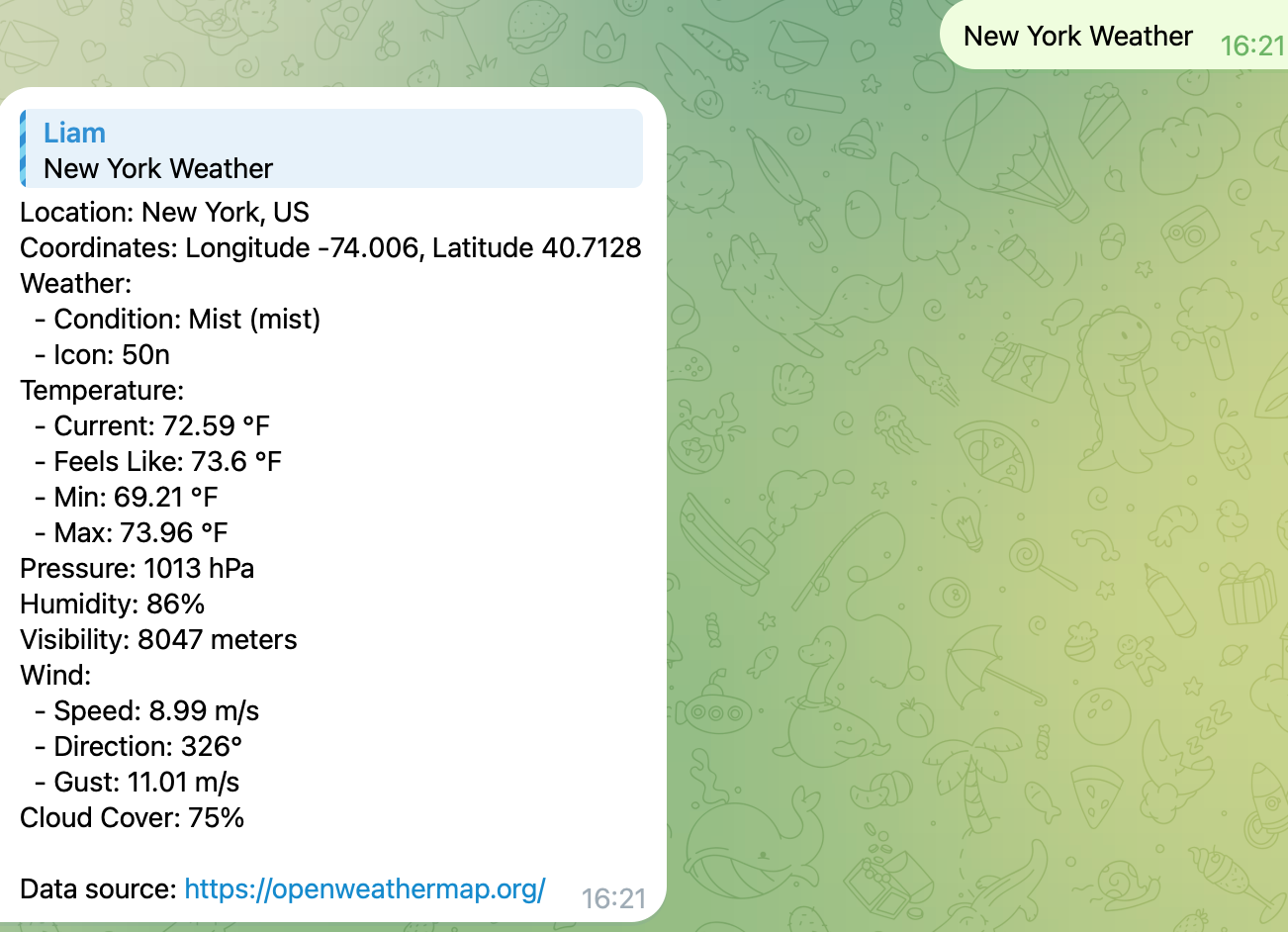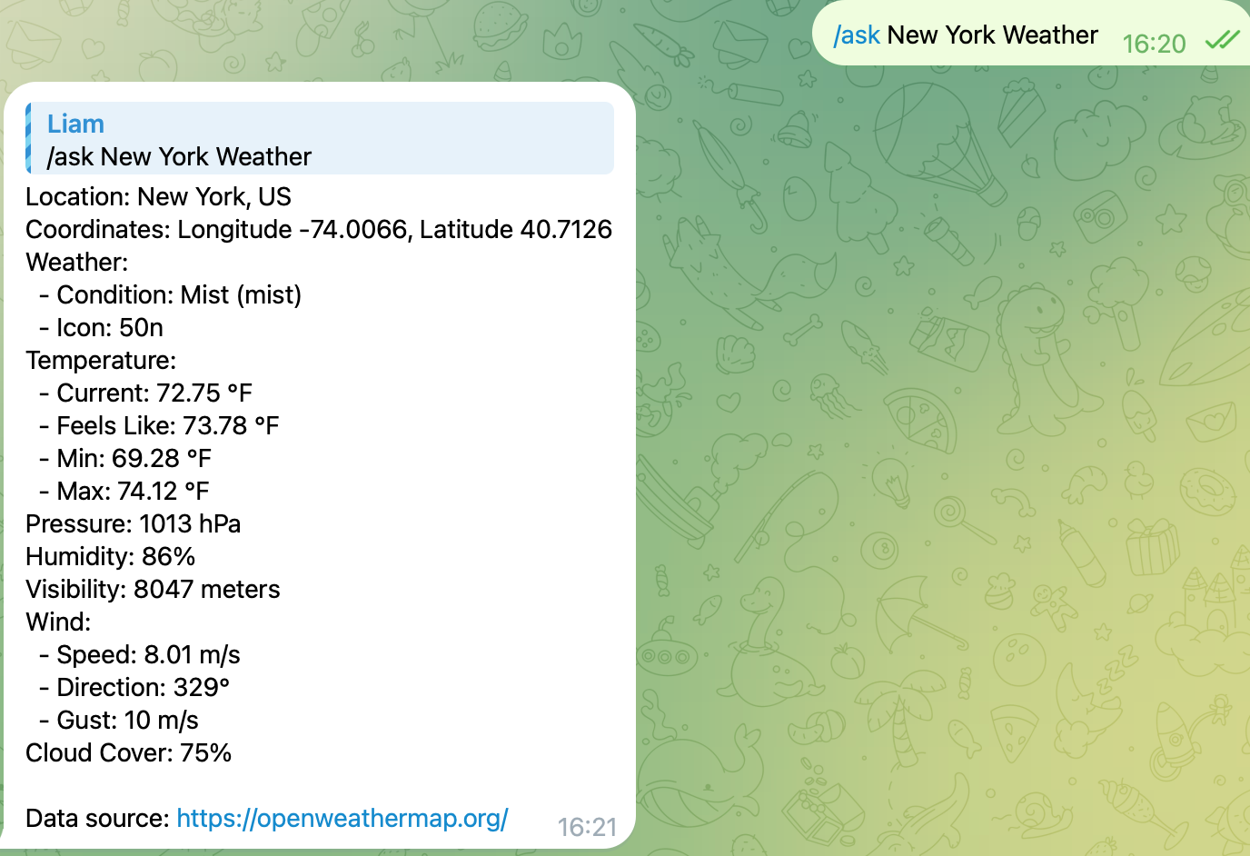 - 按格式化模板返回当前天气结果